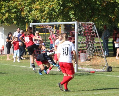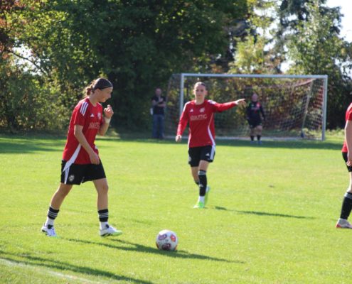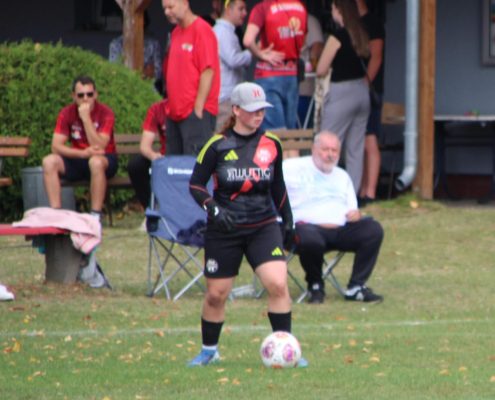 Das haben unsere Mädels allerdings falsch verstanden und begannen die zweite Hälfte wieder sehr engagiert. Zunächst musste aber eine wichtige Frage geklärt werden. Was ist wichtiger, wenn man gegen die Sonnen steht: Eine gute Sicht mit Basecap oder keine gute Sicht, dafür aber keine olle Mütze über den Haaren? Josi im Tor nutzte beide Hände, um gegen die Sonne etwas zu sehen. Da sie aber nur zwei Hände hat, hätten die auch mal bei einer Parade gefehlt. Also wurden ihr zwei Basecaps präsentiert, um diesen Missstand zu beheben. Logische Reaktion, beide wurden abgelehnt. Wie sieht das denn aus? Schon klar, aber nach einer kurzen Diskussion hat sie dann nachgegeben und den vollen Durchblick wiedererlangt.