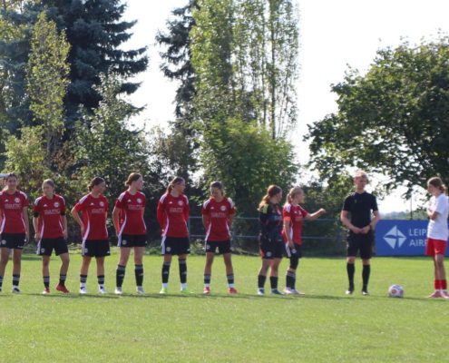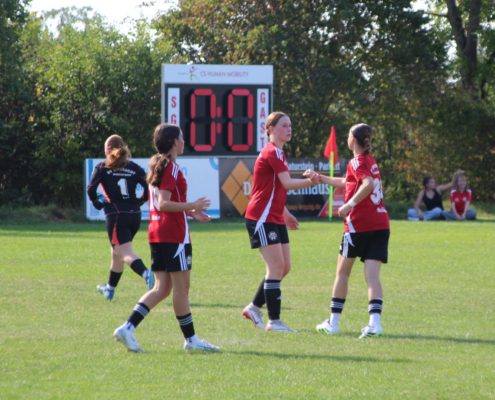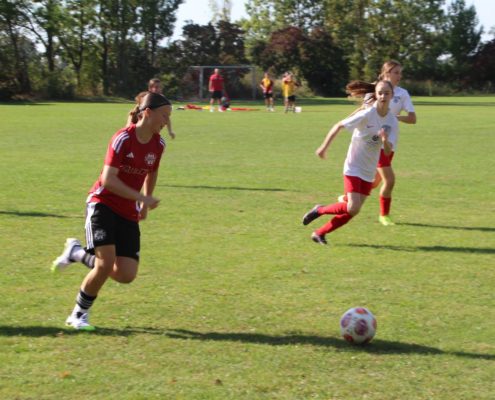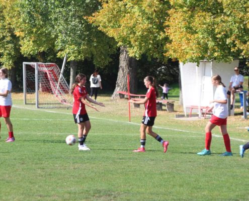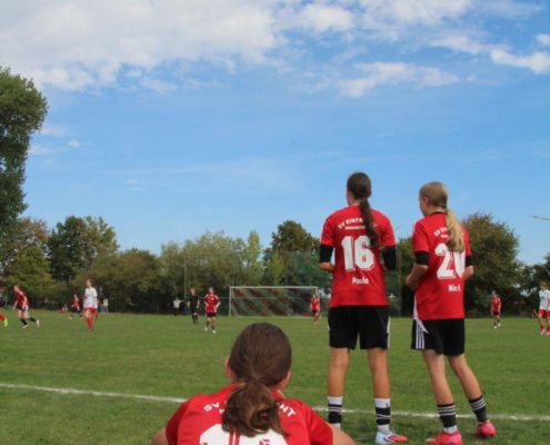 Unsere Gegnerinnen kannten wir noch aus der letzten Saison, damals noch C-Jugend. Genau wie unser Team sammeln auch die Seehausener Mädels die ersten Erfahrungen in der B-Jugend und holten am letzten Spieltag ein Unentschieden beim Leipziger FC. Und wenn man ein Spiel im Rahmen eines Vereinsfestes hat, wird die Motivation entsprechend hoch sein. Wir hingegen mussten schon vor dem Spiel zwei Niederlagen einstecken. Einerseits wurden wir in unserer Paradedisziplin „Wir beginnen die Erwärmung viel, viel später als die Gegner“ ziemlich abgekocht und waren schon ziemlich erwärmt, als die SGS den Platz betrat. Und auch das Spiel „Such den Ball im Dornenwall“ haben wir verloren, mit 11 Bällen angereist, mit 10 Bällen abgereist. 🙈