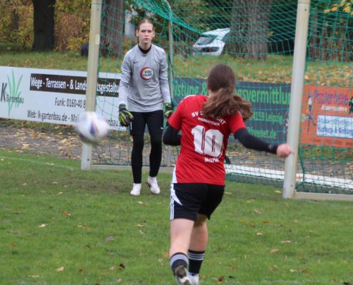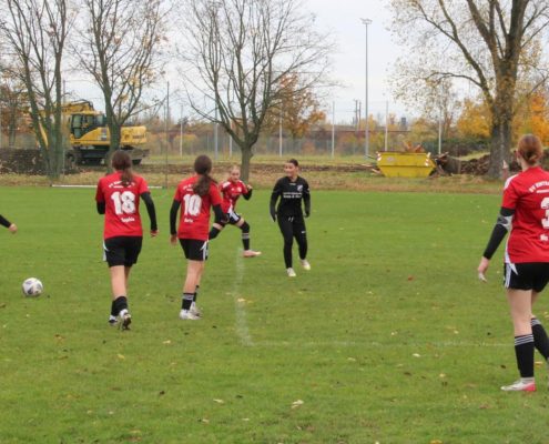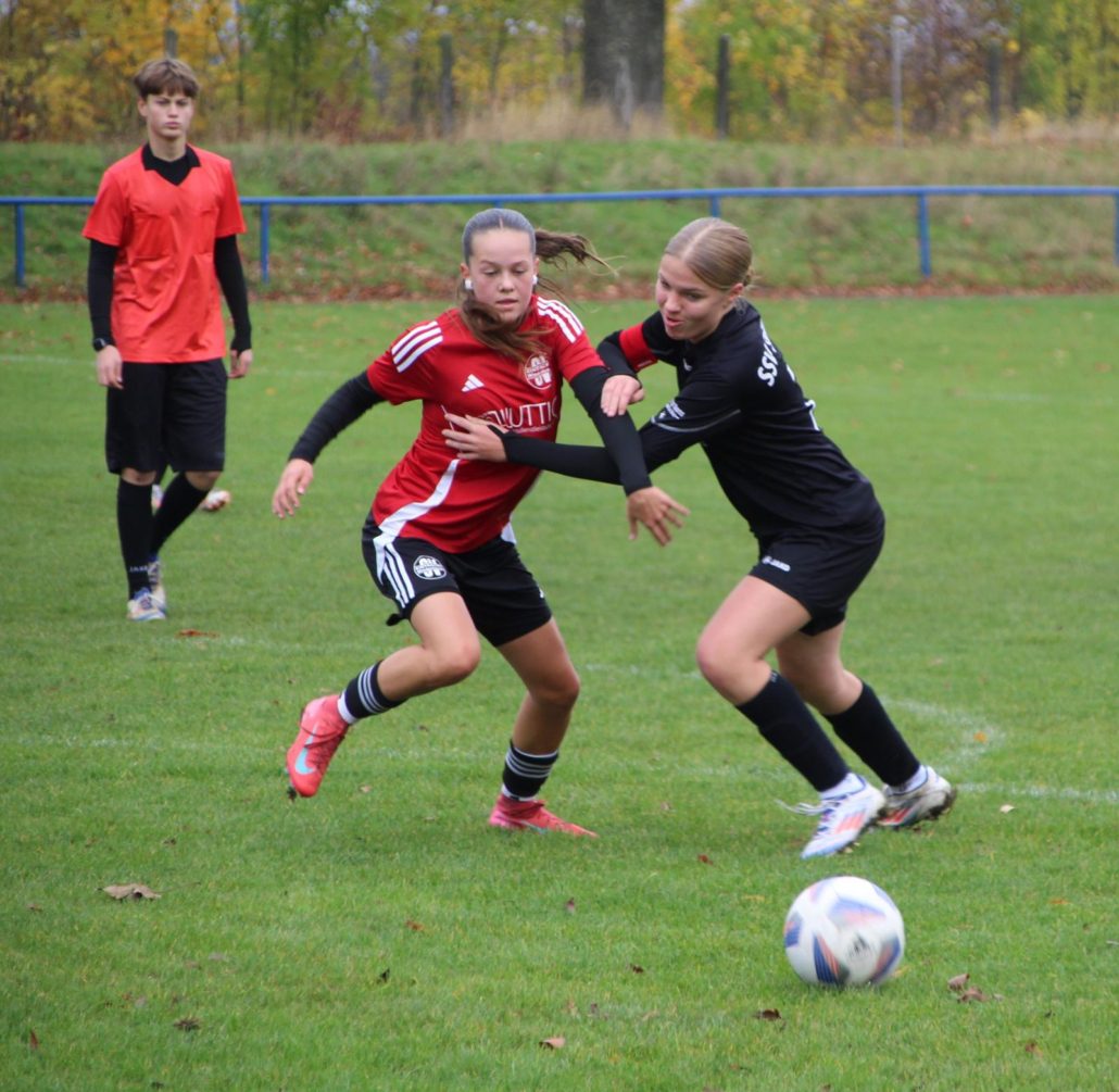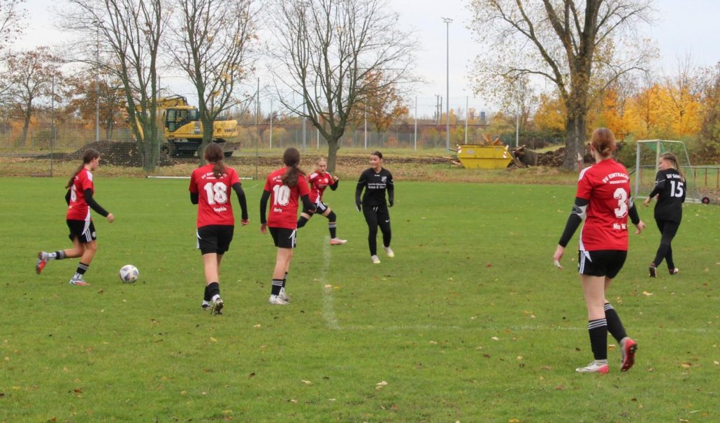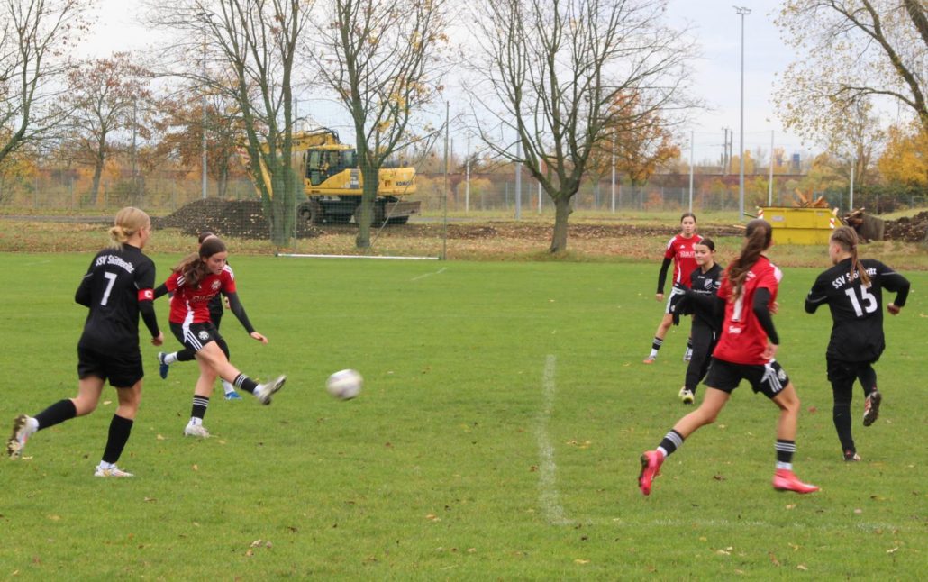 Unsere Mädels haben Halloween vollständig überstanden und so konnten wir (Party hin und Schlafmangel her) alle 11 Spielerinnen begrüßen. Auch die Fans waren zahlreich vertreten, beide Lager unterstützten ihre Teams lautstark. Und so wurde das Spiel angepfiffen und die Eintracht brauchte mal wieder etwas Zeit, um ins Spiel zu kommen. Das kennen wir ja, dabei gab es nach 2 Minuten fast ein Eigentor durch Stötteritz. Aber soviel Glück wäre dann doch zuviel gewesen und so dauerte es bis zur 8. Minute, ehe Marie zu einer ersten Chance per Freistoß kam. Die sehr gute Hüterin der Gegnerinnen vereitelte den Rückstand. Direkt danach kam der SSV zu einem Konter, den aber Laura mit einer kompromisslosen Grätsche beendete. Kurz darauf hatte Paula ihre erste Möglichkeit und man sah so langsam, wie unsere Mädels ihr Spiel aufs Feld brachten. Die ersten 10 Minuten waren endlich vorbei und nun ging es richtig los. Svea startete einen schnellen Seitenlauf, passte auf Marie und es stand 1:0! Danach stellte Svea kurz ihre Zieloptik ein und erhöhte in der 13. Minute auf 2:0. In der Folgezeit erspielten sich unsere Mädels mehrere gute Möglichkeiten und ließen auch hinten nichts anbrennen. Die Abwehr um Anna-Lena, Melina, Laura und später Mia W. konnte heute sehr offensiv agieren und wie so häufig wurde Josi im Tor aktiv in den Spielaufbau einbezogen. In der 23. Minute erzielte Marie ein Zaubertor durch einen direkt verwandelten Freistoß und es stand 3:0. Svea traf in der 24. Minute noch schnell zum 4:0, ehe sie dann leider ausgewechselt werden musste. Es standen wohl immer mal fremde Füße auf ihrem Fuß, das tat weh. Hinein kam Sophie, die nach zwei Versuchen dann in der 31. Minute das 5:0 erzielte. MOMENT! 5:0? Wieso stand da im Liveticker schon ein 6:0? 🤪Sofort entbrannte trainerseitig eine Diskussion mit dem Herrn, der sich für den Liveticker zuständig erklärte und auf seiner Zählweise beharrte, selbst als er nach seiner Mathe-Note gefragt wurde. Und er hatte für dieses Phantomtor sogar schon eine Torschützin parat, es wäre Marie gewesen. In der Pause haben wir dann Marie gefragt. Wenig überraschend hat sie dieses Tor zugegeben. Als später auch noch im offiziellen Spielbericht ein Tor in der 17. Minute durch Marie auftauchte, war trotzdem niemand von uns unglücklich, die Trainer hatten eben andere wichtige Trainerdingens zu tun und außerdem war die Sicht versperrt.😎 Also stand es zur großen Freude des Trainerteams 6:0.