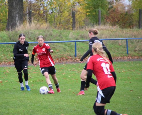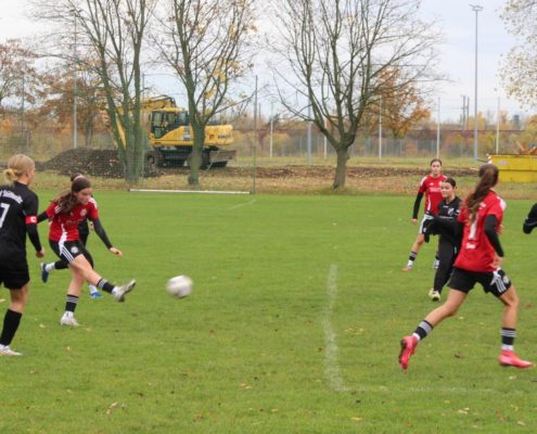 Was? 8.45 Uhr? So früh? So oder so ähnlich blinkten die Schilder über den Köpfen unserer B-Mädels, als man sich praktisch kurz nach Mitternacht auf dem Sportplatz in Wiederitzsch traf🤣. Die Trainer dagegen freuten sich über viel Sauerstoff, angenehme Temperaturen, einen regenfreien Vormittag und die Möglichkeit, die Erwärmung vor dem Spiel etwas länger zu gestalten. Am sechsten Spieltag in der Landesklasse bekamen wir heute Besuch vom SSV Stötteritz. Deren B-Mädels konnten bislang eine ausgeglichene Saison vorweisen und holten aus vier Spielen zwei Siege bei 8:8 Toren. Allerdings wird das Team vom Verletzungspech heimgesucht und daher machten sich lediglich 8 Spielerinnen auf den Weg in den Leipziger Norden.