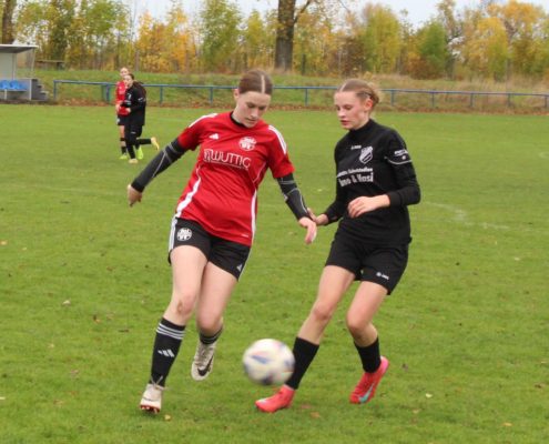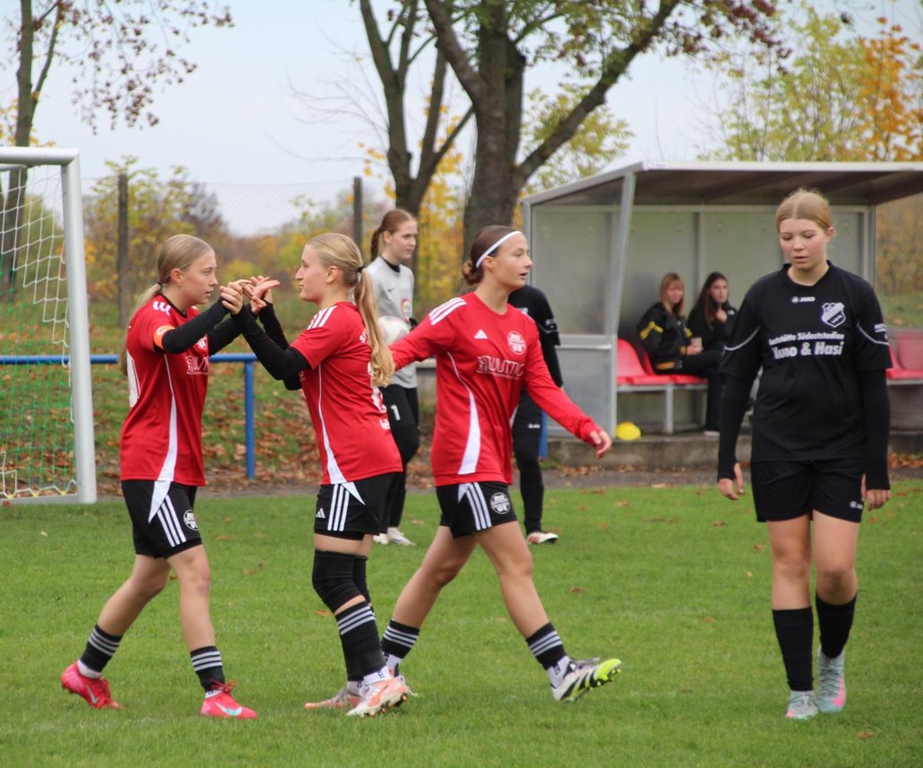 Auch heute haben unsere Mädels wieder absolut überzeugt und ein tolles Spiel gezeigt. Und auch wenn natürlich Tore zählen, es sind auch die gewonnenen Zweikämpfe, die passgenauen Zuspiele, die schnellen Sprints, die gelungenen Dribblings, die vielen anderen spielerischen Elemente und vor allem die mannschaftliche Geschlossenheit unserer B-Juniorinnen in dieser Saison. Nach sechs Spieltagen stehen 18 Punkte auf dem Zettel und ein Torverhältnis von 66:4! Da durfte nach dem Spiel auch mal wieder etwas Schlager aus der Box trällern, das haben sie sich allesamt verdient. Und so freuen wir uns schon auf die nächsten Spiele, bevor es in die Winterpause geht.