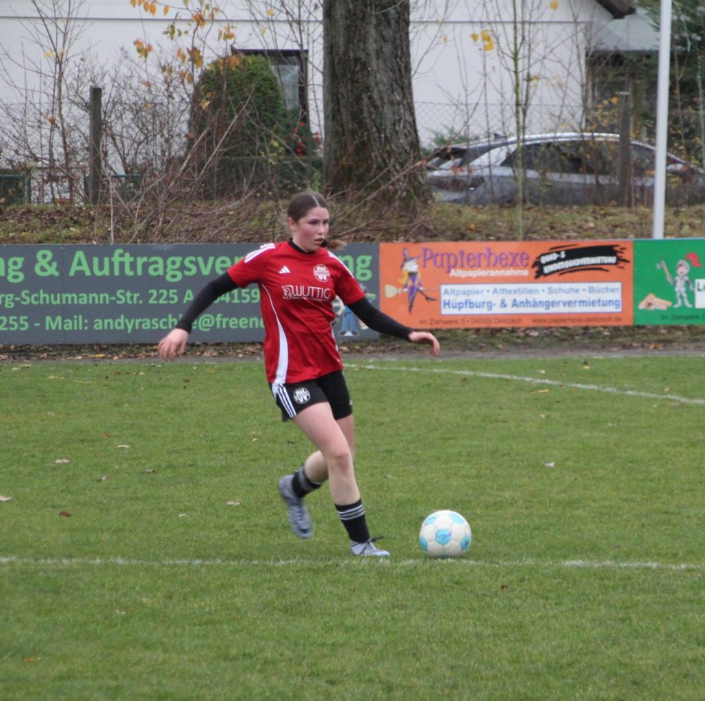 Die zweite Hälfte begann mit einigen Änderungen, neu im Spiel waren Sophie, Paula und Anna-Lena. Die Eintracht legte wieder gut los und kam in der 42 Minute durch Svea zum 5:0. ⚽ Das sollte ja nun die Entscheidung gewesen sein, sollte man denken. Aber plötzlich wurde MoGoNo stärker, kam in der 45. Minute zum 5:1 und unsere Mädels hatten zunehmend alle Hände voll zu tun. Laura traf die Querlatte, Svea hatte mehrere Chancen nacheinander, aber in der 56. Minute drosch eine Spielerin den Ball straff links ins Tor, dass der Ball vor Schreck gleich hängen blieb. Danach ging es hin und her, auf Seiten der Eintracht gab es einige Möglichkeiten durch Marie und Sophie, aber auch MoGoNo blieb gefährlich. Farbig wurde es dann auch noch, eine Spielerin von MoGoNo holte sich eine gelbe Karte ab. Und so dauerte es bis zur 74. Minute, als Marie auf 6:2 erhöhte. ⚽Den Schlusspunkt setzte in der 80. Minute Laura in typischer Manier durch einen starken Fernschuss zum 7:2, ⚽kurz danach pfiff der Schiedsrichter ab.