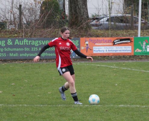 Der Himmel grau, das Wetter noch am Grübeln, selbst der Schiedsrichter mit Regenjacke ausgestattet, was gibt es da schöneres als eine warme Kabine? Aus dieser wurden dann unsere Mädels zum Aufwärmen nach draußen gebeten. Das Ziel war klar, unser Team sollte beim Anpfiff auf Betriebstemperatur sein. Und da insbesondere das Erwärmen der Torhüter häufig auf Höhe der Rasenkante stattfindet, sah unsere Torfrau Josi schon vor dem Spiel aus wie nach dem Spiel. 😅
