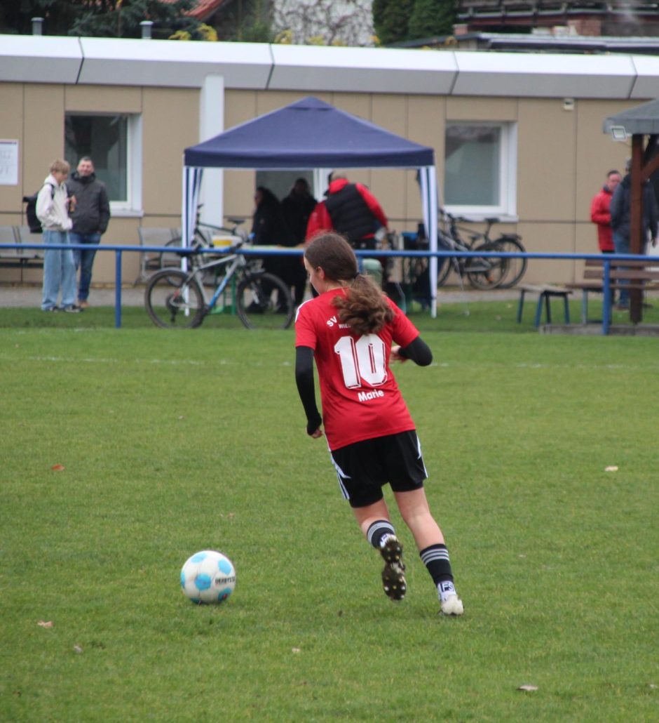 Dann ging es endlich los und unsere Mädels machten schon in den ersten Minuten viel Druck. Bereits nach 33 Sekunden hatte die Eintracht ihre erste Chance und nach 5 Minuten traf Marie zum 1:0. ⚽ Danach gab es drei Ecken für uns in Serie und in der 10. Minute eine sehenswerte Balleroberung, die dann zum 2:0 durch Svea führte.⚽ Kurz darauf kam MoGoNo zum ersten Mal gefährlich vor das Tor der Eintracht, die folgende Ecke ging etwas drüber. Direkt im Gegenzug klingelte es dann wieder im Gohliser Kasten, Vorlage Svea auf Mia H. und es stand 3:0. ⚽ Die Mädels legten einen sehr gelungenen Start hin. In der Folge fand dann aber MoGoNo etwas besser ins Spiel und kam zu einigen Gelegenheiten, die aber sehr gut durch Mia W, Melina und Laura verteidigt wurden. Es gab auch einen kleinen Aufreger, denn nach einem Zweikampf ging eine Spielerin von MoGoNo zu Boden und der Schiedsrichter pfiff. Die Frage war wie immer, vorm oder im Strafraum? Die Wiederitzscher Fangemeinschaft war sich sehr sicher, da der Schiri auf Freistoß entschied, dass es natürlich weit vor dem Strafraum war. So gab es dann Freistoß, die Eintracht stellte ein kleines Mäuerchen irgendwo hin und der Ball ging drüber. Teile des gegnerischen Trainerteams äußerten aber noch einige Zeit ihre Sicht der Dinge, dass es einen Strafstoß hätte geben müssen, aber es ist, wie der Schiri pfeift. In der 29. Minute gelang dann Marie mit ihrem zweiten Treffer das 4:0. ⚽ Unsere Gegnerinnen schien das aber anzustacheln und so kamen sie bis zum Halbzeitpfiff noch ein paar Mal gefährlich an den Wiederitzscher Kasten heran, inklusive eines zweiten Freistoßes, der aber an der Mauer kratzte. Dann war Halbzeit und die Eintracht ging mit einem komfortablen Vorsprung in die Pause, den sich die Mädels gegen einen starken Gegner erkämpften. Mittelfeld und Angriff arbeiteten auch defensiv, die Abwehr startete ihrerseits Offensivaktionen und so hatte man die Partie im Griff.