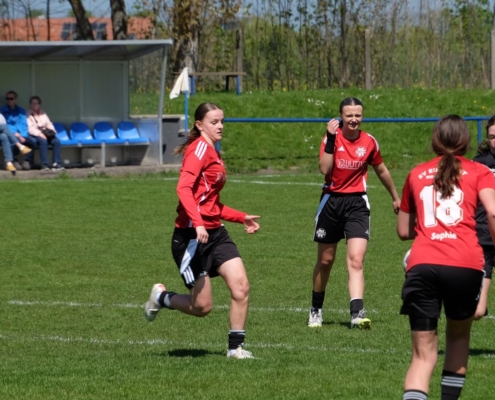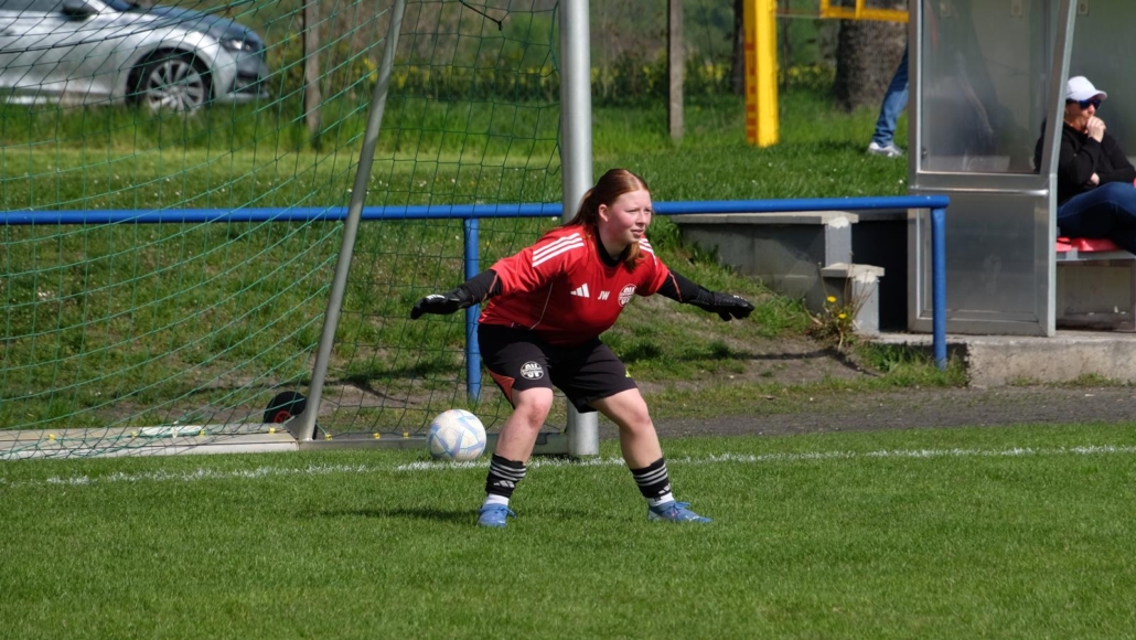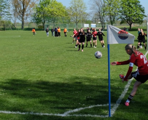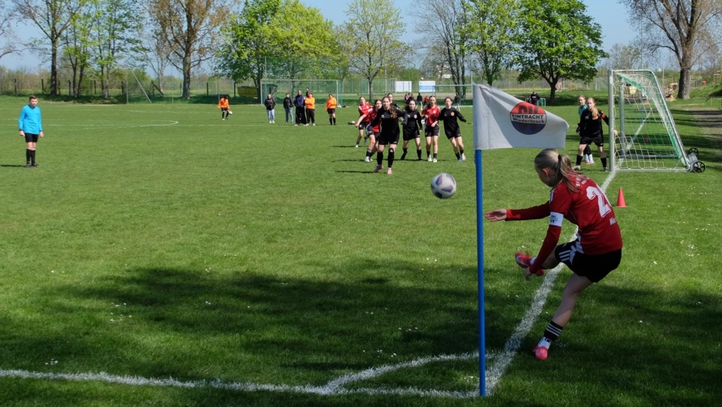 Dann wurde die zweite Hälfte angepfiffen und unsere Mädels machten einfach da weiter, wo sie vor der Pause aufgehört hatten. 48. Minute, Ecke Laura, Tor Sophie und es stand 7:1⚽. Eine Minute später fiel dann schon das 8:1 durch Mia H⚽. Etwas bitter für die Gegnerinnen wurde es in der 50. Minute, als dem LFC ein Eigentor unterlief. 10 Minuten später traf erneut Melissa zum 10:1⚽. Auch Sophie belohnte sich mit ihrem zweiten Tor in der 65. Minute⚽. Das Spiel war natürlich gelaufen, aber der LFC versuchte weiterhin, noch einige Akzente zu setzen. Leider verletzte sich die Torhüterin, spielte aber trotz Schmerzen bis zum Schluss. Das muss man erstmal durchhalten! Mädchenfußball eben, solange keine Extremitäten fehlen, geht es immer weiter. In der 72. Minute war dann noch einmal Melissa an der Reihe, diesmal traf sie per Kopf, klasse gemacht⚽. Letzte Woche war zu diesem Zeitpunkt schon Schluss, aber heute sollte es wirklich über die volle Distanz gehen. Und da dachte sich Mia H, diese Zeit kann man noch prima nutzen und traf auch noch zweimal⚽. Beinahe hätte Anna-Lena in der letzten Minute ebenfalls noch einen Treffer beigesteuert, denn urplötzlich tauchte sie aus den Tiefen der Abwehr ganz vorne auf, leider fand aber ihr Ball nicht den Weg ins Netz. Und so pfiff der Schiri nach 82 Minuten eine faire, nicht übermäßig harte Partie ab. Die Mädels vom LFC waren sichtlich enttäuscht, haben aber alles gegeben und bis zum Abpfiff gekämpft. An dieser Stelle gute Besserung an die Verletzten! 🍀