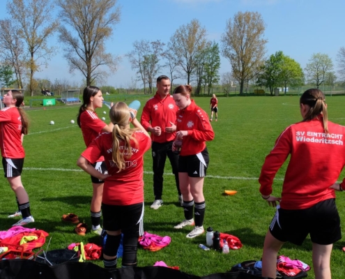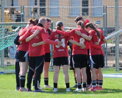 Nachdem die beiden letzten Heimspiele leider vorzeitig endeten, hofften unsere Mädels heute auf ein Spiel, was endlich mal wieder über die volle Distanz gehen darf. Immerhin feierte heute die neue Auswechselbank Premiere. Was für ein Luxus, auch wenn natürlich lieber gespielt als gesessen wird. Und da die Bank mehr Sitze hat als wir Auswechselspielerinnen, wird hiermit offiziell Werbung gemacht: „Es gibt noch freie Plätze in unserem Team, sogar Sitzplätze!“ 😎. Im Kader fehlten Marie und Paula, also traten wir mit 9 Spielerinnen gegen die Mädels vom Leipziger FC 07 an. Das Hinspiel gewannen wir auswärts mit 6:1 auf Kunstrasen, heute gab es grünen Echtrasen, Sonnenschein und jede Menge gute Laune und Vorfreude🌞. Der LFC holte aus den letzten drei Spielen zwei Siege und kassierte nur eine knappe Niederlage und so waren wir gespannt, was uns erwartet.