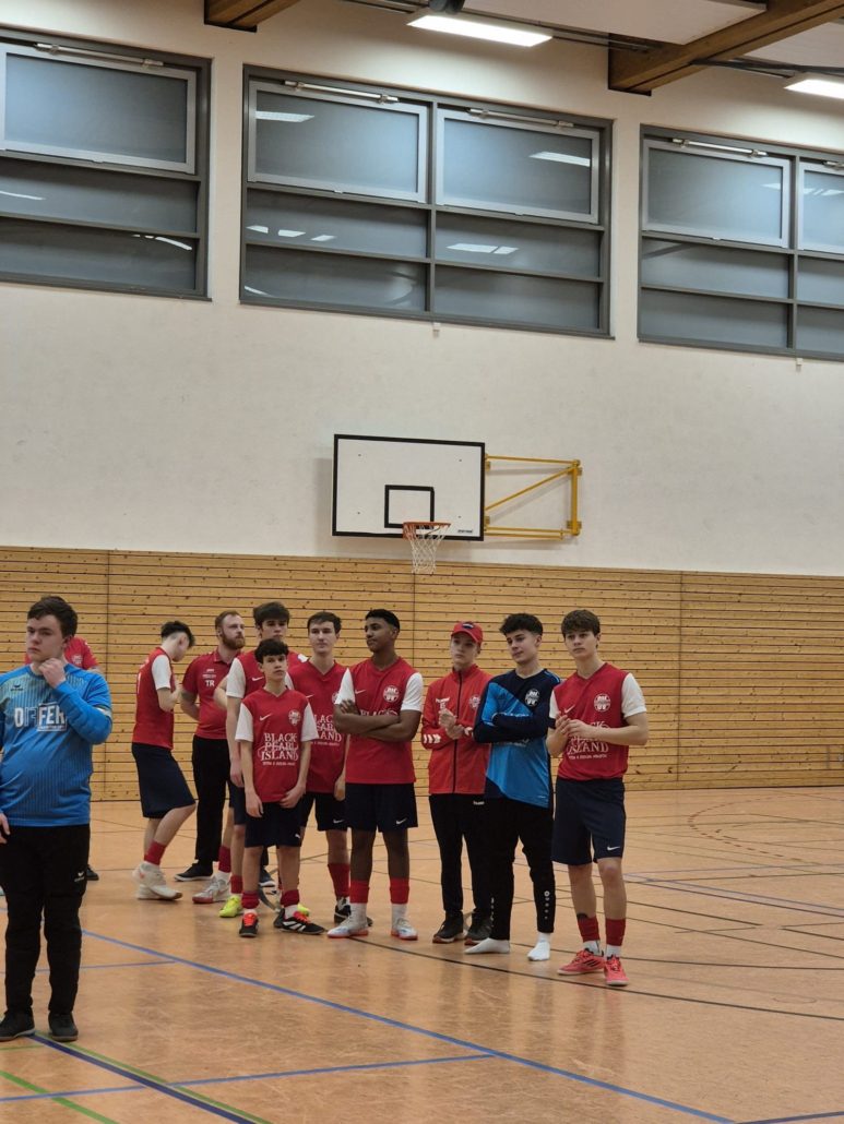 Vor dem dritten Spiel mussten wir unseren Torwart Eddie verletzungsbedingt ersetzen. Feldspieler Hugo übernahm kurzerhand den Platz im Tor und hielt mit vollem Einsatz dagegen. Anschließend ging es gegen den Gastgeber Preussen Magdeburg, den wir souverän mit 1:0 besiegen konnten 💪
