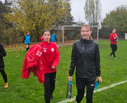 Heute stand bei den C-Juniorinnen wieder ein interessantes Spiel an. Der Tabellendritte aus Wiederitzsch war zu Gast beim Tabellenvierten und Stadtnachbarn Seehausen. Nach drei Siegen in Folge wollten die Wiederitzscherinnen unbedingt weiter in der Erfolgsspur bleiben, und so durften sich die Mädels erstmal ordentlich warm machen, um an diesem kalten und regnerischen Morgen auf Betriebstemperatur zu kommen. Amelie, unsere Torfrau, war naturgemäß näher an den Grashalmen (oder an der nassen Erde) dran und sah schon vor Spielbeginn aus wie nach 5 Tagen Gartenbau. 😅 Der mitgereiste Anhang freute sich hingegen über warme Getränke, Backwaren und später auch über Bockwurst und Wiener. Ein herzliches Dankeschön an die Gastgeber.