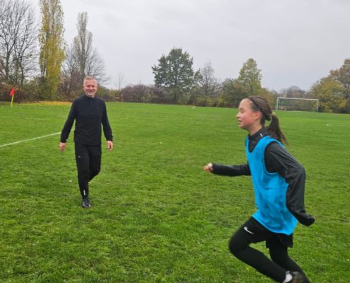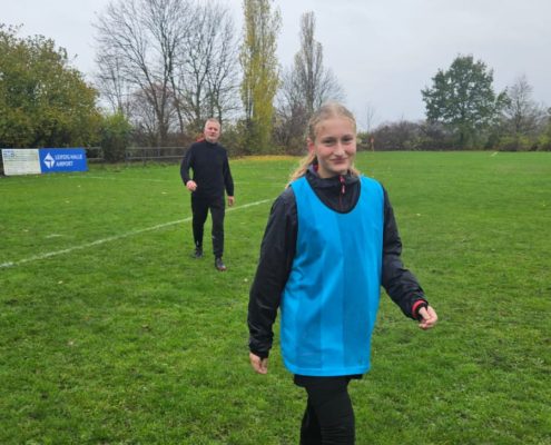 Nach dem Anpfiff durch den souveränen Schiedsrichter wurde schnell klar, warum die Seehausener Mädels in der oberen Tabellenhälfte stehen. Es war in den ersten Minuten ein Spiel auf Augenhöhe und Seehausen drückte vor allem mit einer schnellen 7. Unsere Wiederitzscherinnen nahmen sich wie üblich etwas Zeit, um ins Spiel zu kommen. In der 18. Minute setzte dann Ronja mit dem 0:1 das erste Ausrufezeichen und Wiederitzsch führte ⚽. Danach ging es munter weiter hin und her, ehe Mia mit einem Doppelschlag in der 29. und in der 33.Minute für eine 0:3 Pausenführung sorgte ⚽⚽⚽. Aber auch Seehausen erspielte sich einige Chancen, so dass die Zuschauer eine kurzweilige erste Hälfte erleben durften.