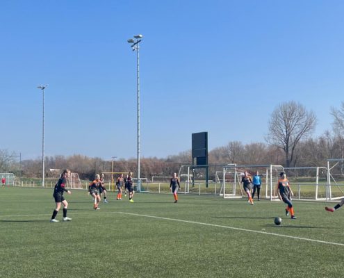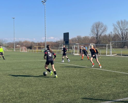 Nach dem tollen Heimsieg letzte Woche ging es heute zum Leipziger FC, wieder bei blauem Himmel 🌞, aber 10 Grad kälter. Wir waren sehr gespannt, was uns erwarten würde. Zwar gab es einen hohen Sieg im Hinspiel, aber die Mädels vom LFC mussten sich in der letzten Woche denkbar knapp mit 0:1 gegen den Roten Stern geschlagen geben, der auf Platz 4 der Tabelle steht.