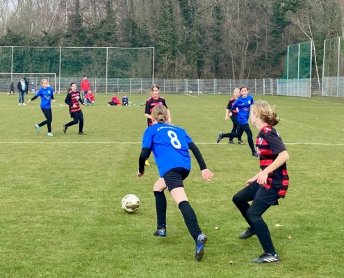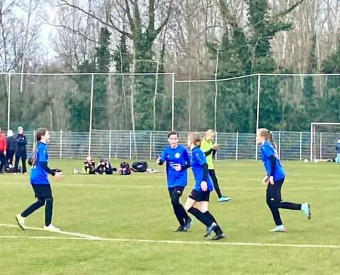 Die ersten Minuten waren von Abtasten geprägt und mit mehr Spielanteilen vom Stern. Nach einer Unstimmigkeit in der Abwehr ging der Stern auch Mitte der ersten Halbzeit in Führung – dieser Wachmacher war im Rückblick positiv für unsere Mädels – nach einer sehr guten Kombination über die linke Seite zwischen Marie, Melina & Ronja wurde Lena in Szene gesetzt und mit einem platzierten Schuss wurde umgehend der Ausgleich hergestellt! ⚽ In der Folge wurde die Eintracht dominanter und Svea erzielte mit links die 1:2 Führung ⚽⚽😎 Svea konnte für heute „verpflichtet“ werden und konnte der dezimierten Mannschaft mit „nur“ 9 Mädels toll helfen 💪 Etwas zu lang gejubelt und schon lag der Ball in unserem Tor – getreu dem Motto „nimm du ihn, ich habe ihn auch nicht“ war erneut die Abstimmung nicht optimal – kurz vor dem Pausentee, wurde ein Ball von Svea ca. 15m vor dem Tor erobert und direkt über den TW ins Netz versenkt ⚽⚽⚽ Super Aktion 🤗