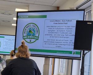 Weiter ging es in einem Workshop, unter Leitung von Luise Fiedler (FUSSBALL KANN MEHR gGmbH), in welchem es vor allem um Netzwerken, Sichtbarkeit und Zusammenhalt im männerdominierten Fußballsystem ging.