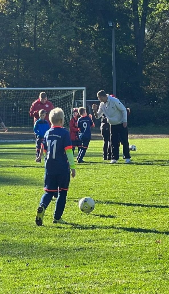 Ich hatte den Eindruck, eine Traube an Spielern jagte den Toren nach, ich wusste gar nicht, wo ich zuerst hinschauen sollte. Zum Glück hatte unser Trainer Otsche den Durchblick und brachte wieder Ordnung in meine Jungs. „2,2,1 Format“ rief er. Henriette wurde eingewechselt und legte einen Sturm an den Tag, der sich sehen ließ. Und so langsam fanden sich alle Spieler ein. Wo in der Mitte anfangs eine Lücke war, bildete sich nun eine Mauer. Endlich gelang das gemeinsame Spiel. Unsere Wiederitzscher belohnten sich in der 15. Minute mit einem 2:0, ein sehr schönes Tor von Matteo.