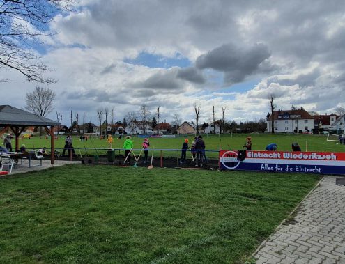 Bei echtem Aprilwetter mit Sonne, Regen und Hagel haben wir heute tatkräftig auf dem Sportplatz angepackt: Es wurden Banden angeschraubt, die Anzeigetafel neu verankert, der Sanitärtrakt gereinigt und ca. 60m Laufbahn instand gesetzt!